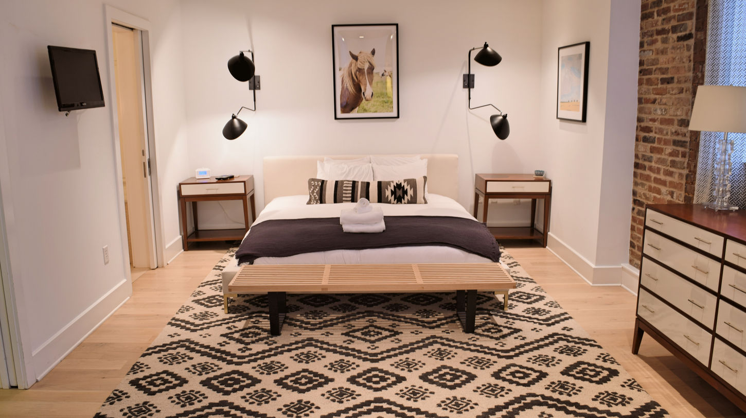 Today the historic 19th century Cohen building is home to Modern Trousseau, a couture bridal shop, on the first floor, the second floor is occupied with the corporate headquarters Giarratana Development and Premier Parking. In 2012 Sanders Pace Architectural firm was hired to restore the building and create a custom loft dwelling on the third floor. The third floor is now a stunning private vacation rental property boasting 4 bedrooms, 2 ½ baths and sleeping capacity for up to 12 guests. The 3055 square foot vacation rental is a one of a kind luxury retreat steps away from Broadway and all of Nashville’s finest attractions and destinations.